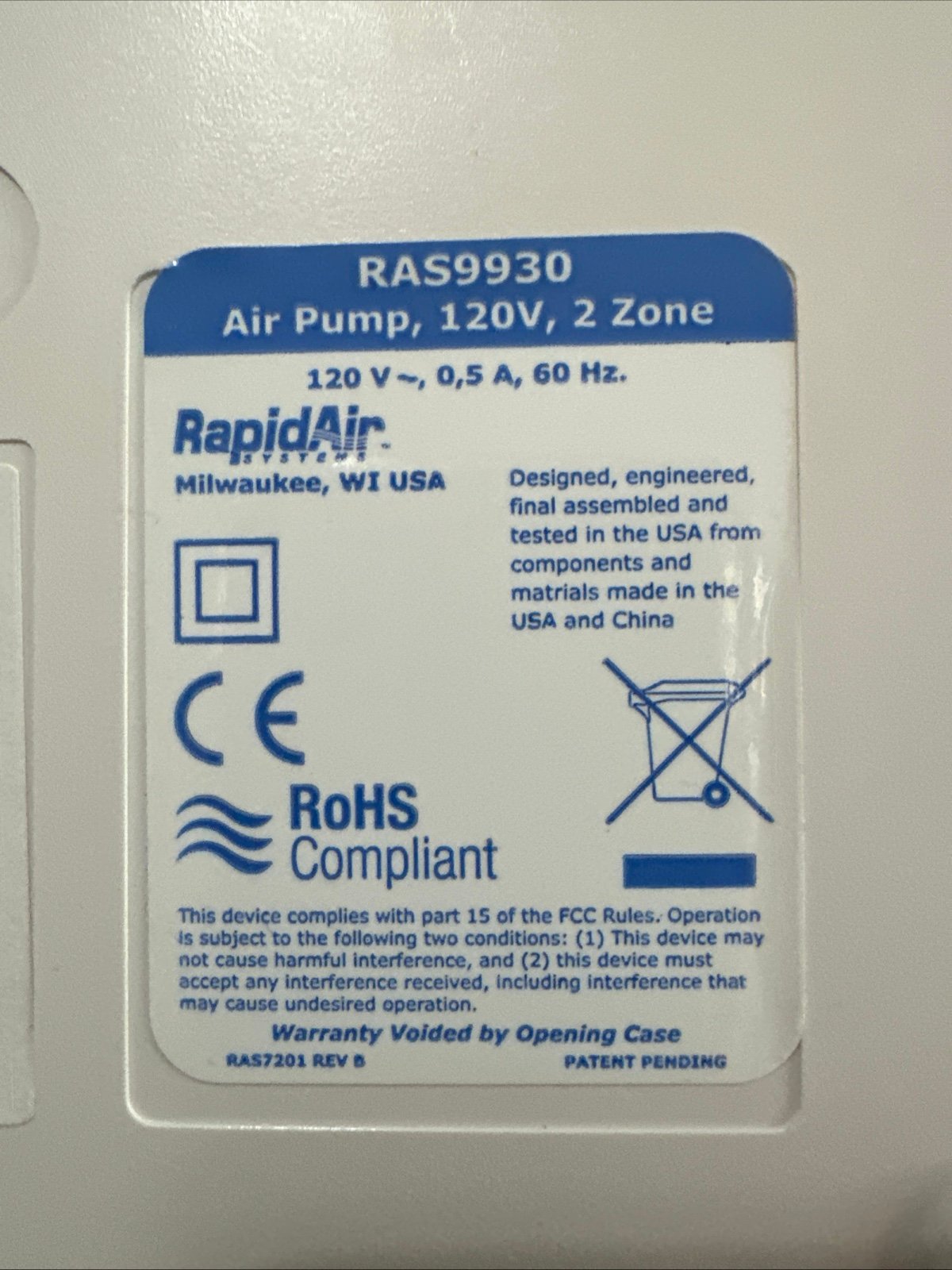 COMFORTAIRE KING Dual Chamber Air Mattress Pump Ras9930 with 2 Controls - RARE - everything works!