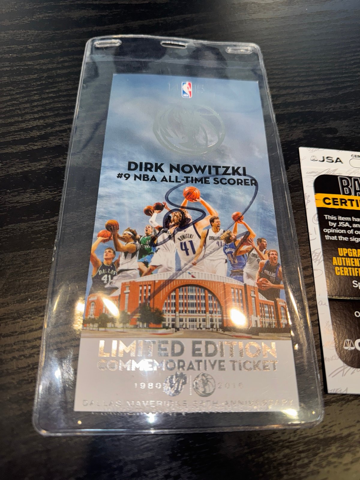 This is for a commemorative ticket from the game Dallas Mavericks legend, Dirk Nowitzki, moved into 9th all time on the NBA scoring list! This has a JSA authenticity sticker and a matching COA. Add this rare piece of history to your collection! Please see my other listings for similar items.